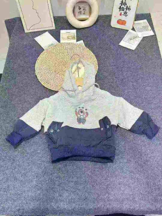冬季新款 儿童绗棉拼接一体绒连帽卫衣帽衫男童女童韩版上衣潮,数量186件,码数80-110,独立包装,全清8.8元
