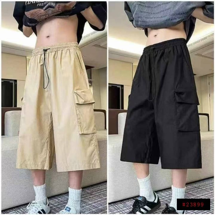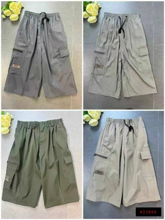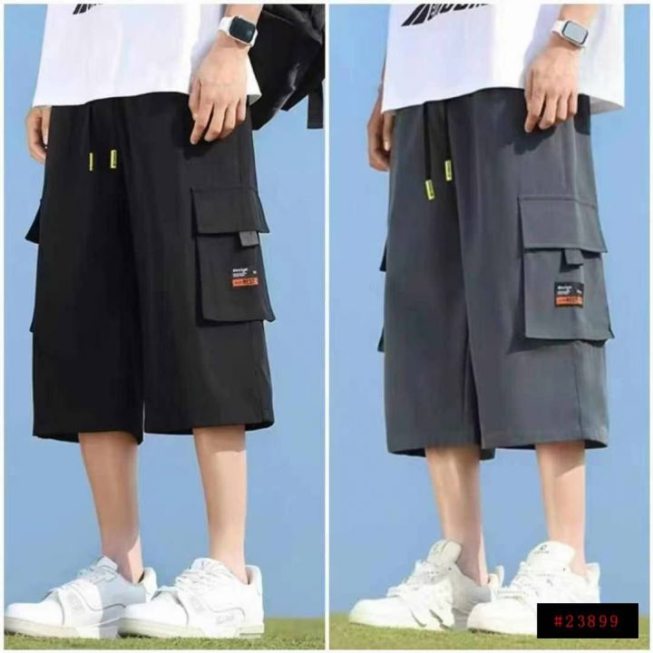 下身工装七分裤[太阳]全清8.8、5800件、均码。 夏季新款潮牌男装宽松休闲抽绳松紧腰多口袋拉链百搭七分工装裤,前后都有口袋,腰部有弹力松紧、不挑人、上身效果巨巨巨棒[强]这个价格太靓丽啦[666]部分有吊牌,全部全新独立包装,100件起多款混配9.8@_@