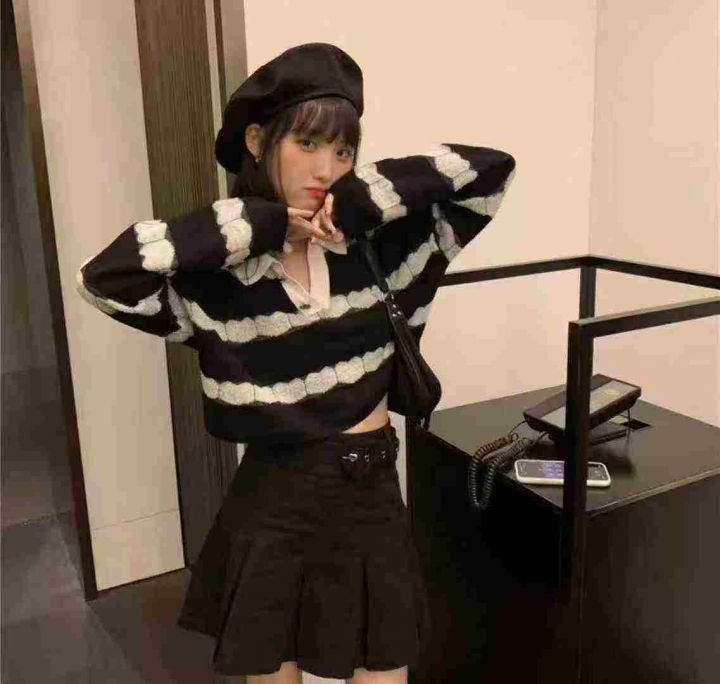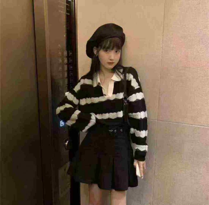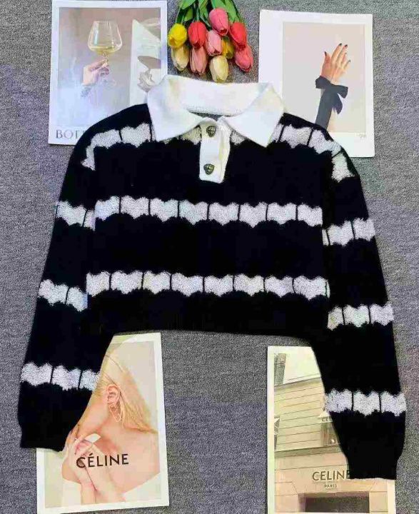 韩版软糯V领爱心扣别致设计条纹针织毛衣,[爱心]210件左右,均码,穿70-120斤,万佳档口货,原包装️无瑕疵,[666]实体店品质,分货加一