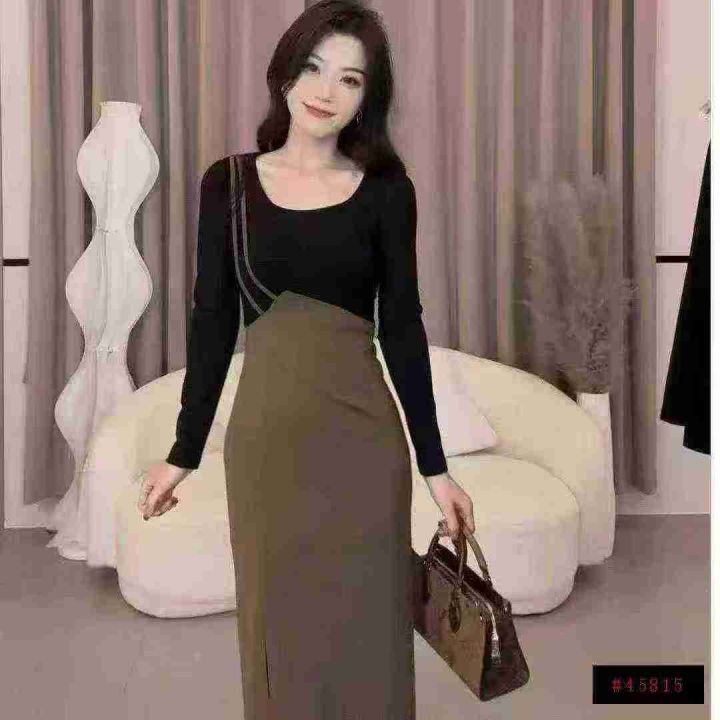 法式气质设计感连衣裙378件7.9,面料舒适,撞色拼接,下摆开叉设计,码数1-...