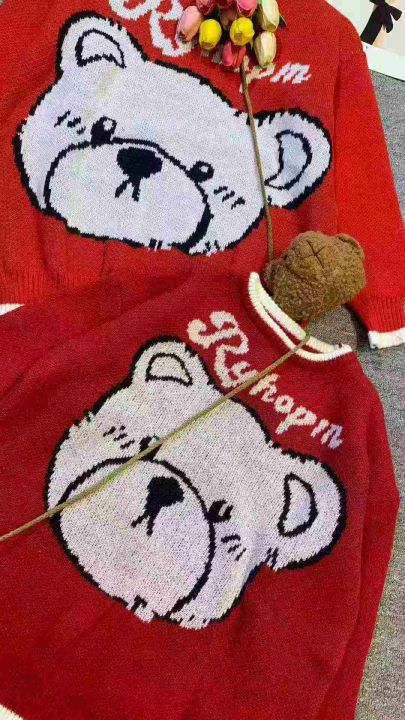 气质小熊提花刺绣宽松百搭针织毛衣,[爱心]55件左右,均码,款号#1172,穿70-130斤,万佳档口货,原包装️无瑕疵,[666]实体店品质