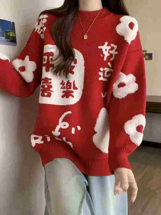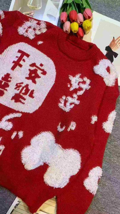 慵懒风软糯好运红色百搭针织毛衣,[爱心]45件左右,均码,款号#1275,穿70-130斤,万佳档口货,原包装️无瑕疵,[666]实体店品质