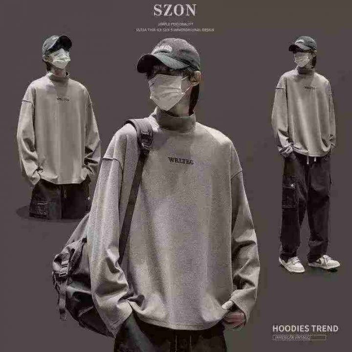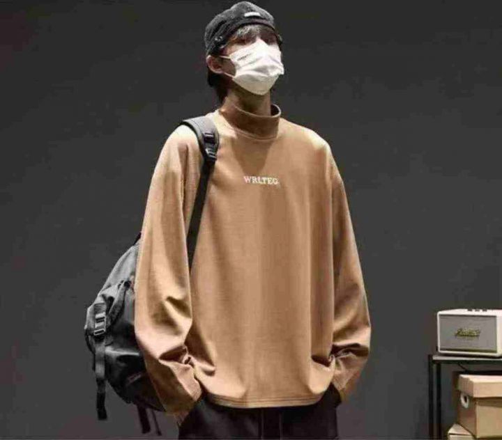 秋冬新款宽松百搭半高领潮流德绒长袖打底衫,独立包装...