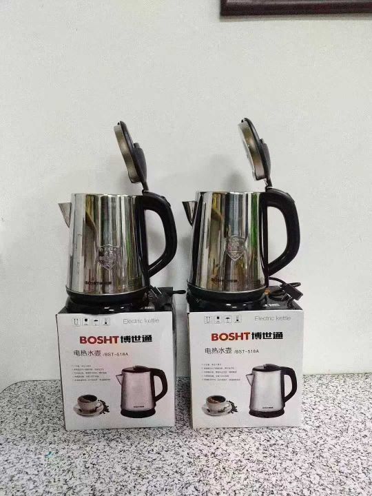 品牌博世通电水壶2000个,国标,1.8升, 0.5厚不锈钢,双金温控,全铜线 超大内钢盖,独立包装,原箱原件。