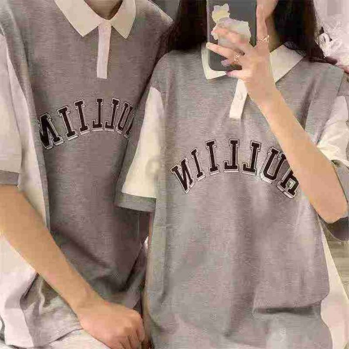 ☕️国潮美式复古polo领情侣装短袖t恤女夏季设计感小众ins宽松上衣潮 100件...