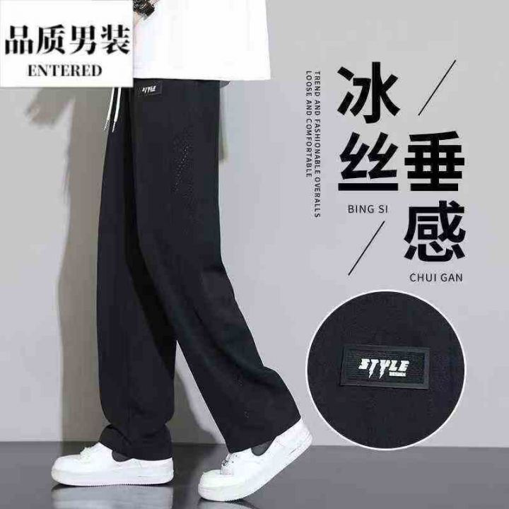 清8.8分货➕1男装夏款冰丝裤子季透气潮牌阔腿运动裤宽...