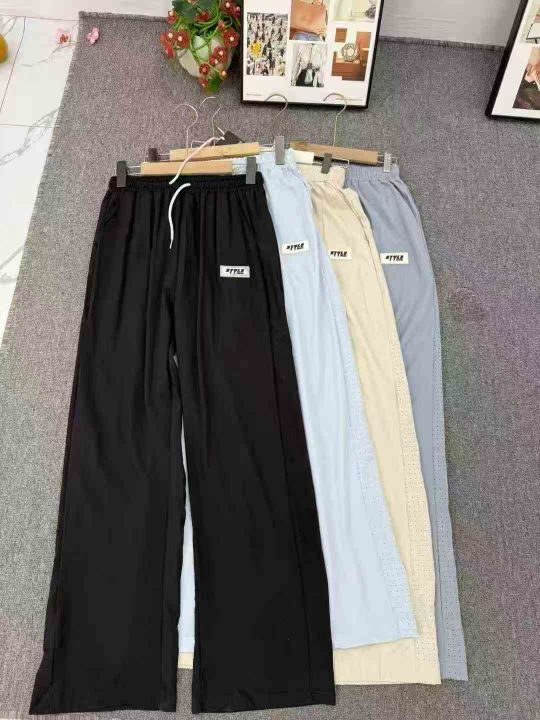 男装夏款冰丝裤子季透气潮牌阔腿运动裤宽松直筒休闲纯色长裤,码数M-4XL,数量1035件,独立包装,货品干净漂亮。