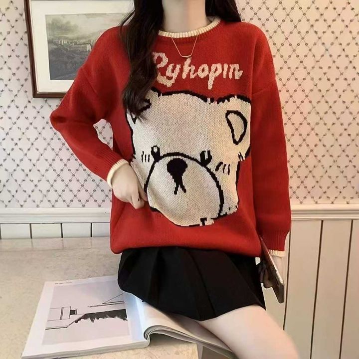 气质小熊提花刺绣宽松百搭针织毛衣,[爱心]55件左右,均码,款号#1172,穿70-130斤,万佳档口货,原包装️无瑕疵,[666]实体店品质