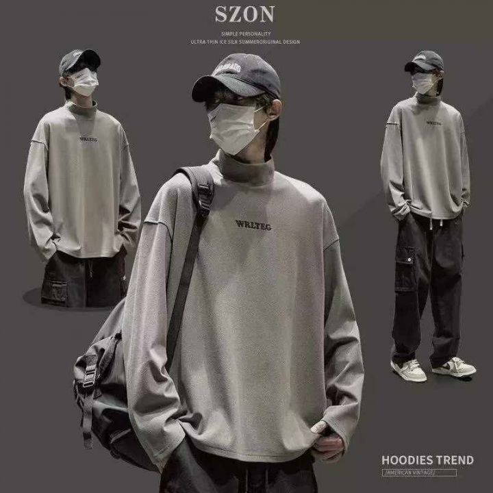 秋冬新款宽松百搭半高领潮流德绒长袖打底衫,独立包装...