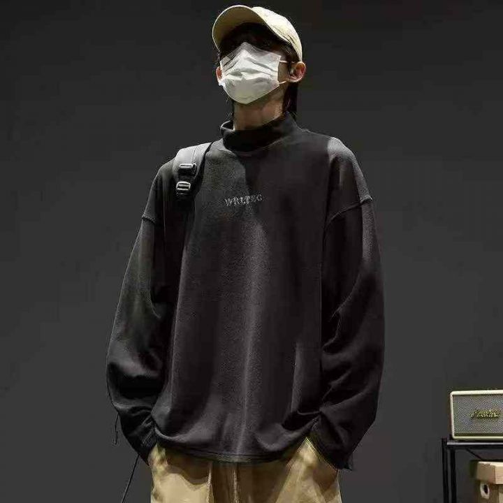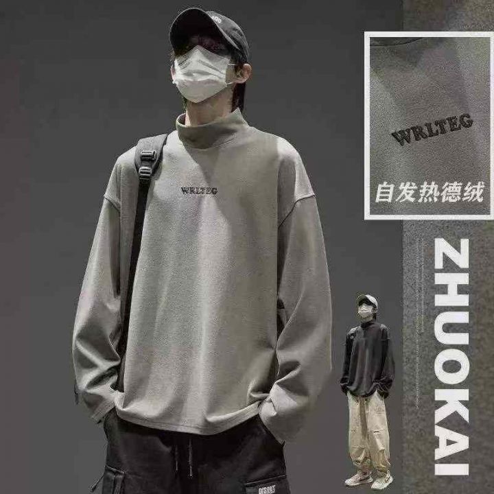 秋冬新款宽松百搭半高领潮流德绒长袖打底衫,独立包装...