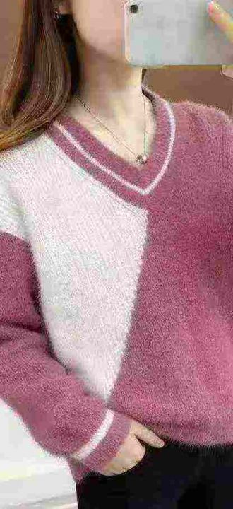 秋冬新款仿水貂绒V领套头洋气撞色设计感小众套头毛衣,独立包装,均码年龄软糯厚实有弹力,174件,全清6.9元超低价秒杀!
