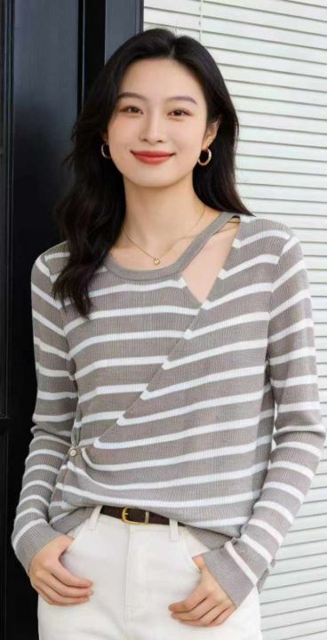 秋冬新款撞色条纹宽松设计款韩系套头羊毛衫,独立包装...