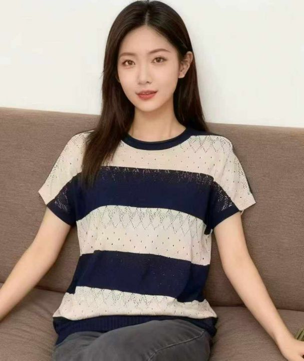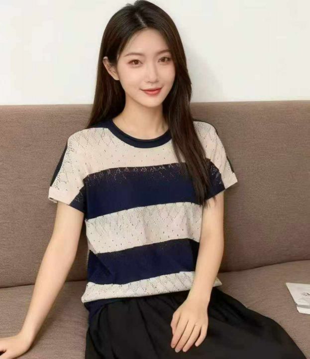 夏季新款轻熟女装冰丝针织T桖,独立包装,均码面料柔...