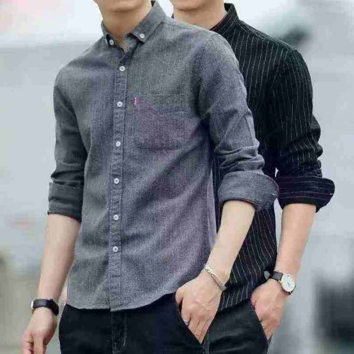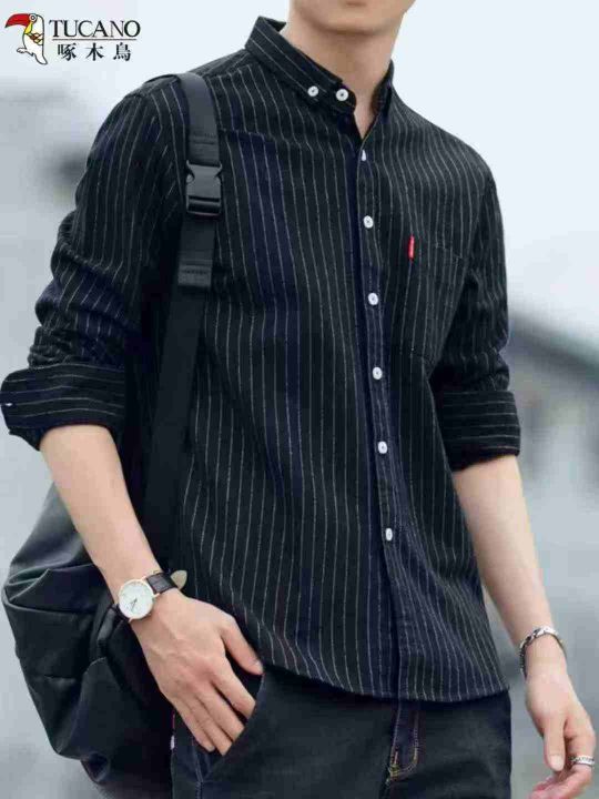 衬衫男长袖新款年条纹男士衬衣秋季休闲潮流百搭男装,...
