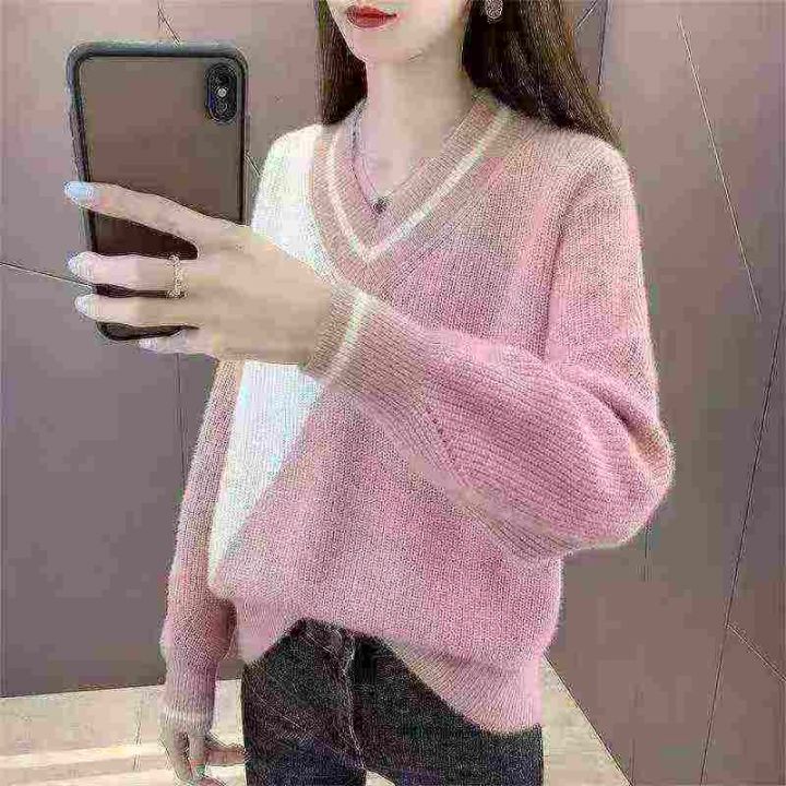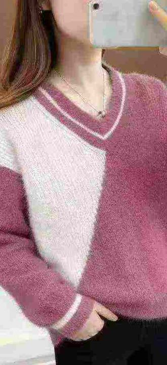 秋冬新款仿水貂绒V领套头洋气撞色设计感小众套头毛衣,独立包装,均码年龄软糯厚实有弹力,174件,全清6.9元超低价秒杀!