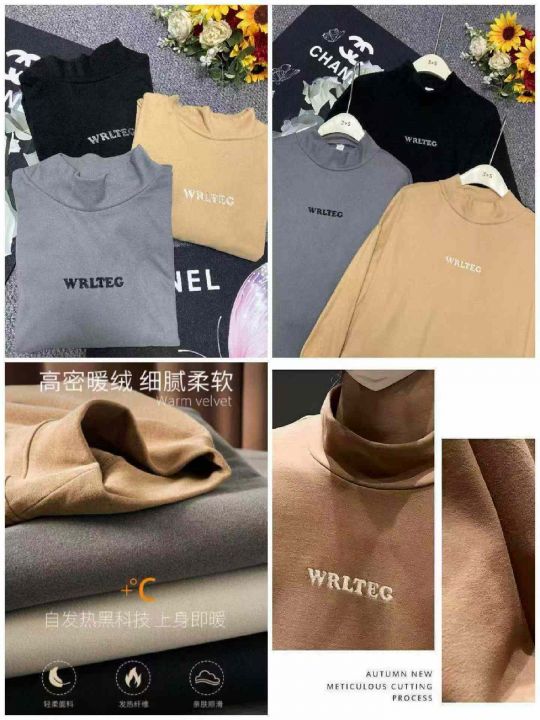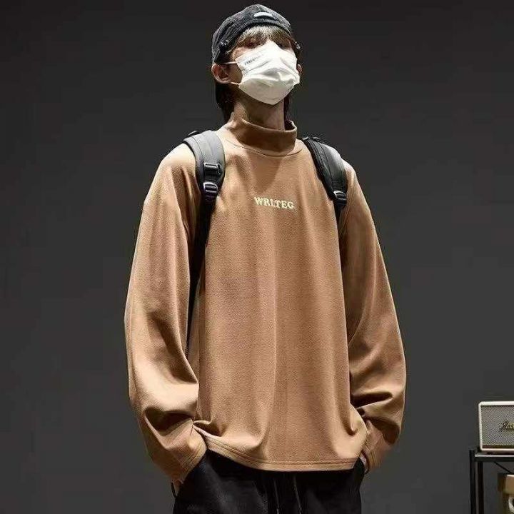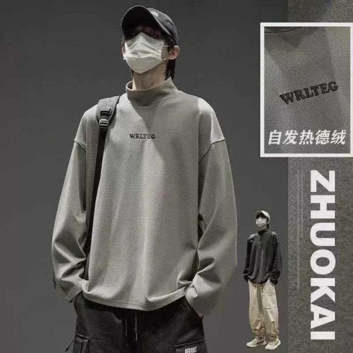 秋冬新款宽松百搭半高领潮流德绒长袖打底衫,独立包装...