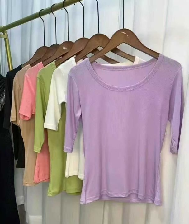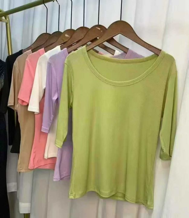 夏季新款五分袖U领螺纹t恤百搭修身显瘦时尚中袖打底衫994件,s~2XL独立包装,货品干净整洁,全清福利价6.9元,