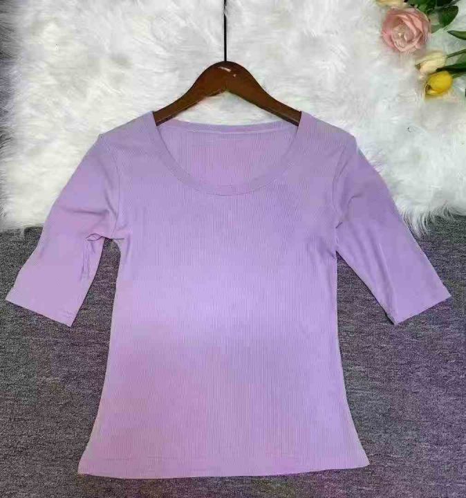 夏季新款五分袖U领螺纹t恤百搭修身显瘦时尚中袖打底衫...