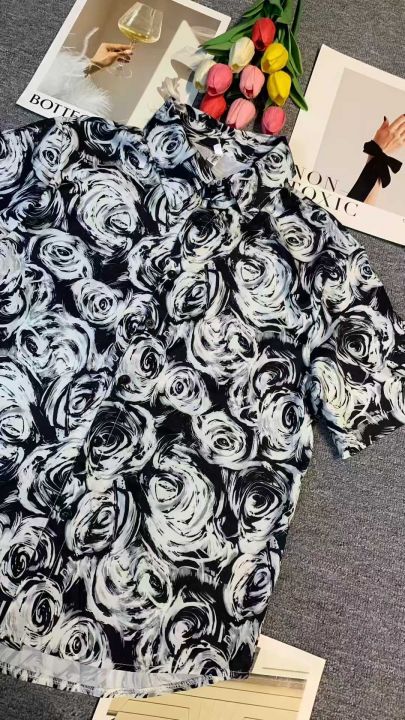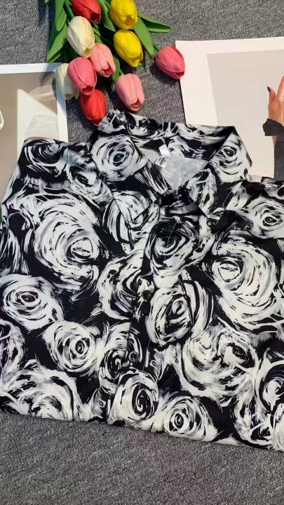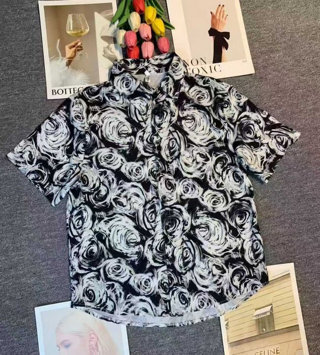 慵懒风印花设计感海边度假百搭衬衣,[爱心]100件左右,码数M-3XL,穿90-150斤,(模特图仅供参考),[666]工厂原包装瑕疵
