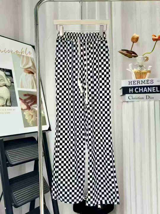 冰丝棋盘格裤子女夏季薄款高腰显瘦垂感休闲阔腿裤 有弹力 独立包装 码数1-5码 数量120件 全清6.8