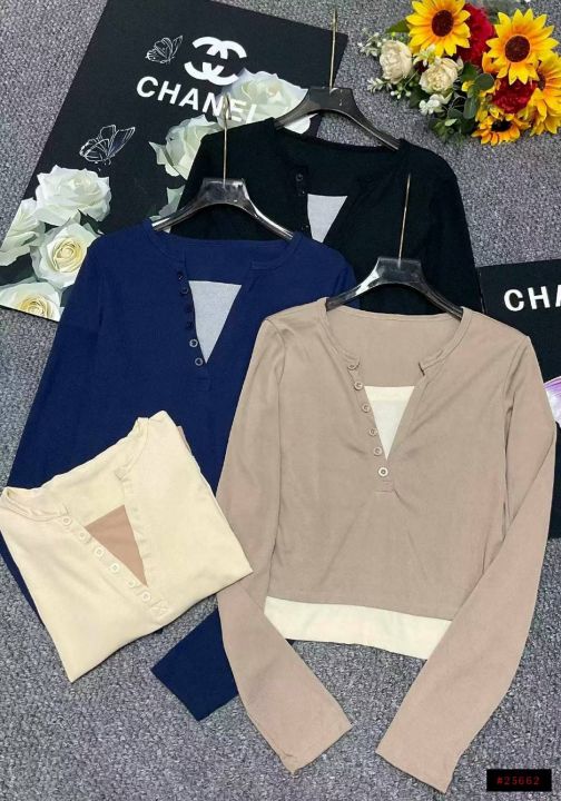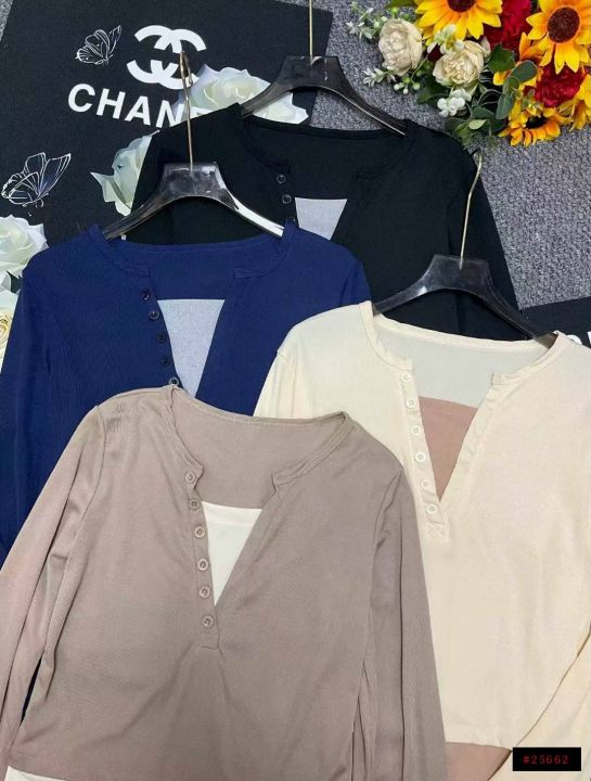 春季新款韩版正肩假两件V领修身显瘦设计感长袖上衣,独立包装,码数M--XL码, 710件,全清5.8元超低价秒杀!分货加一!@_@