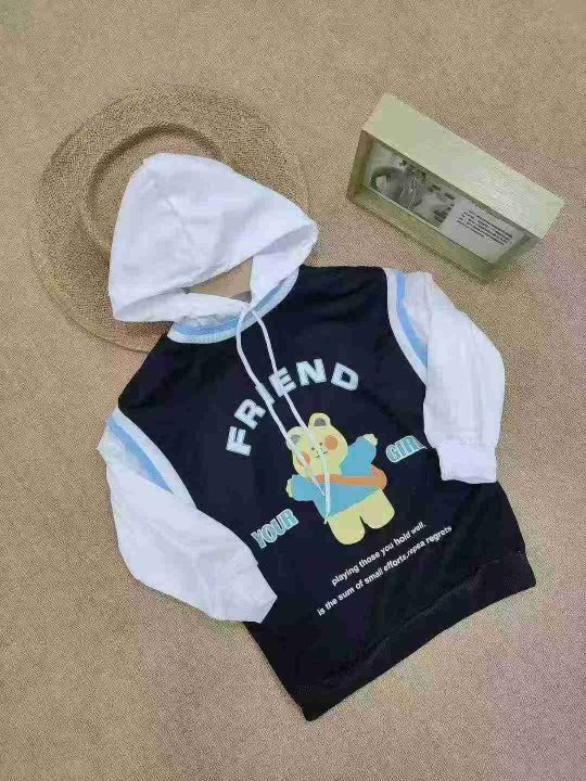 [月亮]:潮童棉质拼接假两件连帽卫衣
