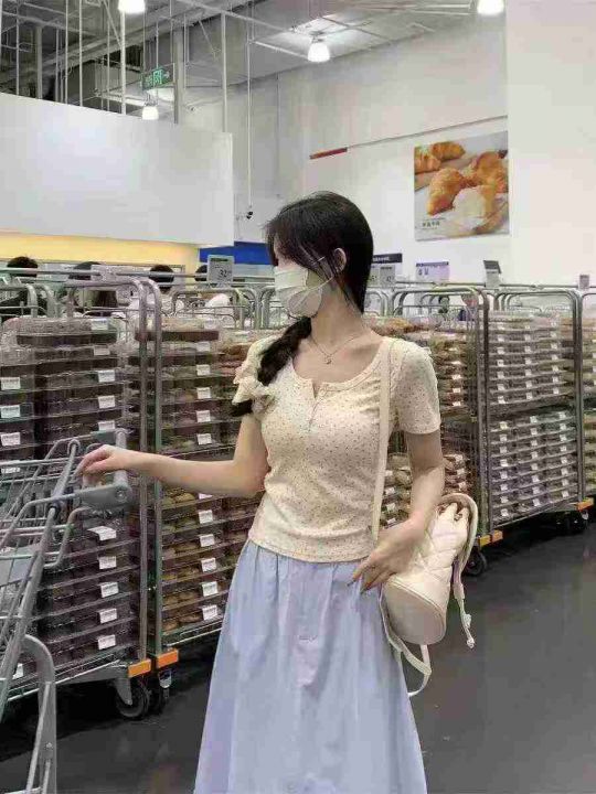 [月亮]:5.9清1005件[月亮]:小清新碎花冰丝纽扣短袖...