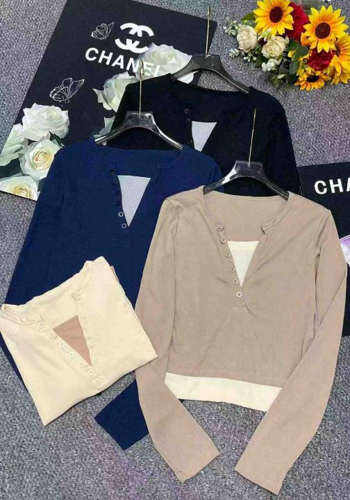 春季新款韩版正肩假两件V领修身显瘦设计感长袖上衣,独立包装,码数M--XL码, 710件,全清5.8元超低价秒杀!分货加一!