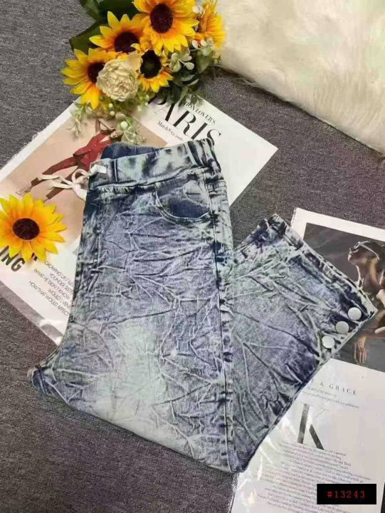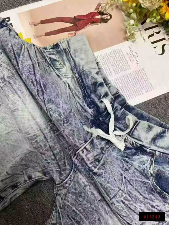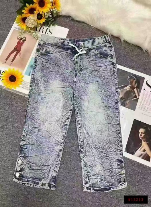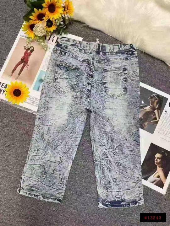 男女同款复古蓝高弹力洗水棉松紧腰牛仔中裤,独立包装,码数M--2XL码,400件左右,全清5.8元超低价秒杀!分货加一!@_@