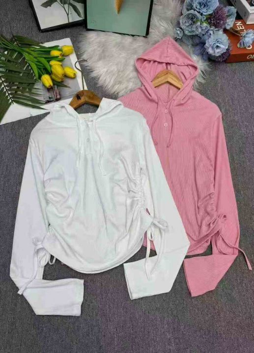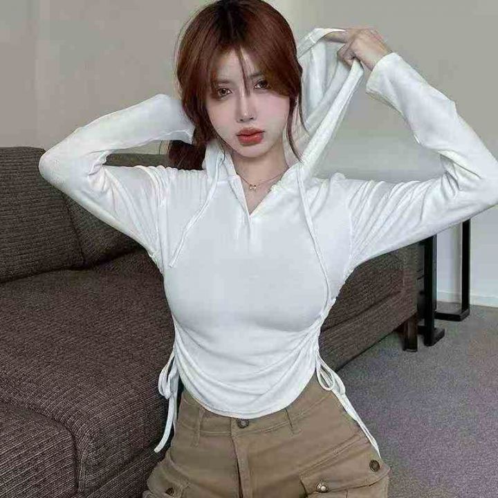 全清价6.9高弹螺纹长袖连帽束腰气质辣妹上衣,独立包...