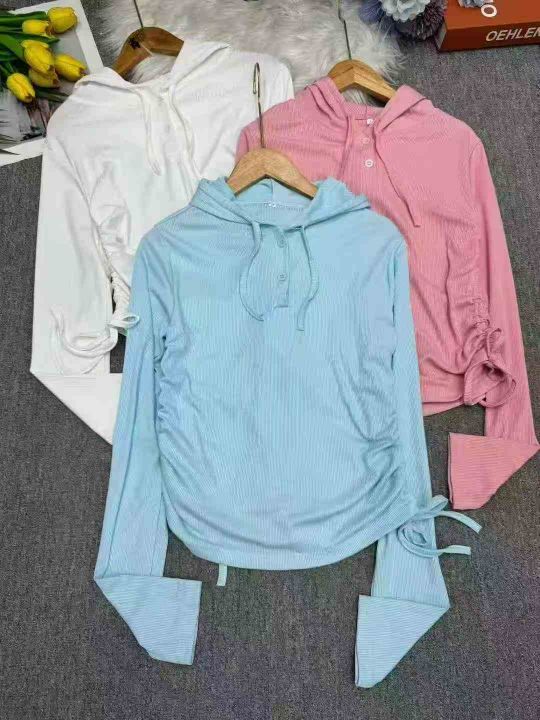 高弹螺纹长袖连帽束腰气质辣妹上衣,独立包装,码数1-3,数量441,整款三色,分货加1,货号121#41