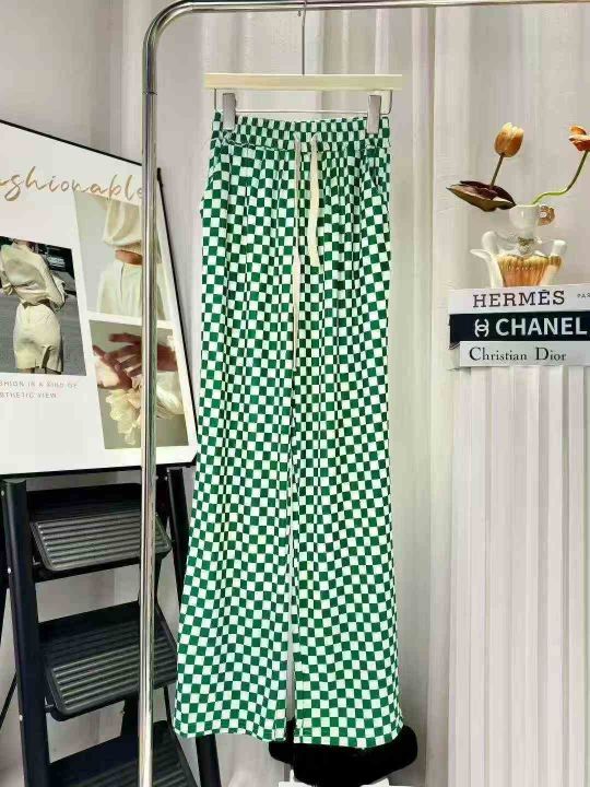 冰丝棋盘格裤子女夏季薄款高腰显瘦垂感休闲阔腿裤 有弹力 独立包装 码数1-5码 数量120件 全清6.8