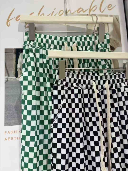 冰丝棋盘格裤子女夏季薄款高腰显瘦垂感休闲阔腿裤 有弹力 独立包装 码数1-5码 数量120件 全清6.8
