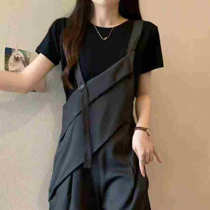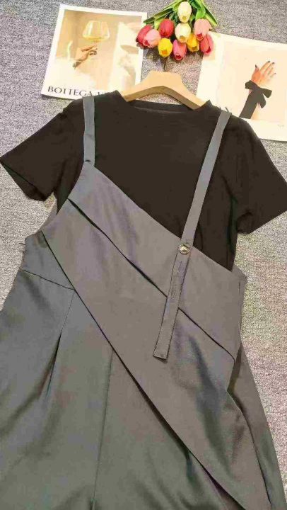 上新全清:12.8一套韩版不规则设计感短袖配背带裤套装...