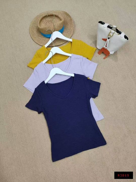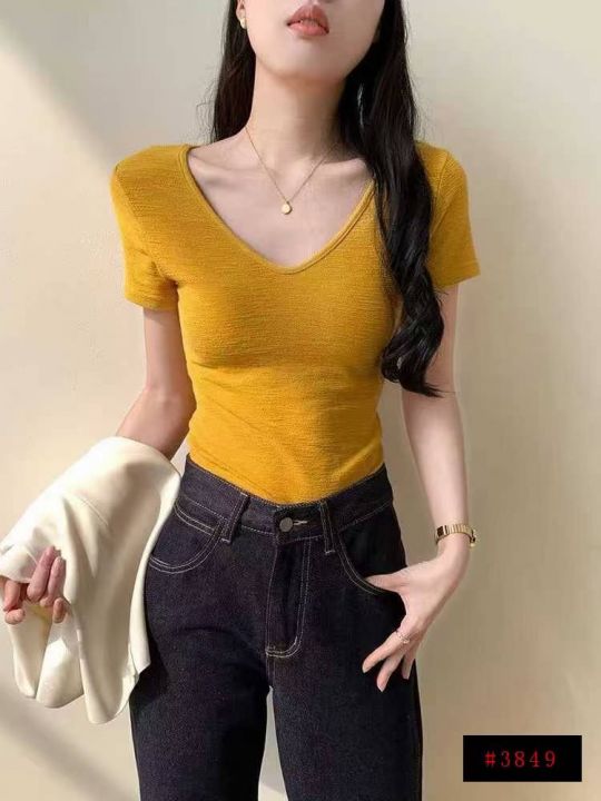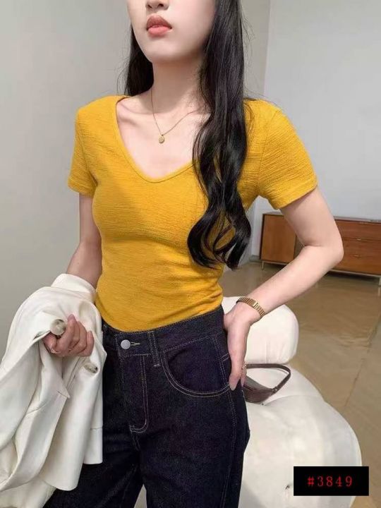 [月亮]:6.5清1240件[月亮]:韩系褶皱肌理感V领正肩T...