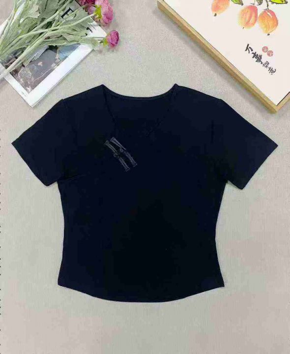 1625件国风重工刺绣中式盘扣拉架棉短袖T恤女,以黑色...