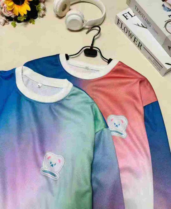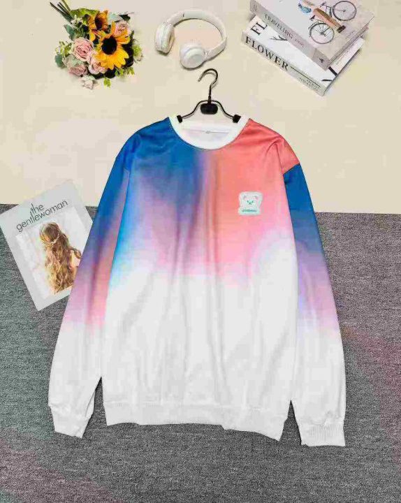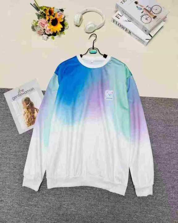 时尚潮流休闲渐变色小熊印花圆领卫衣,整款两色,品质...