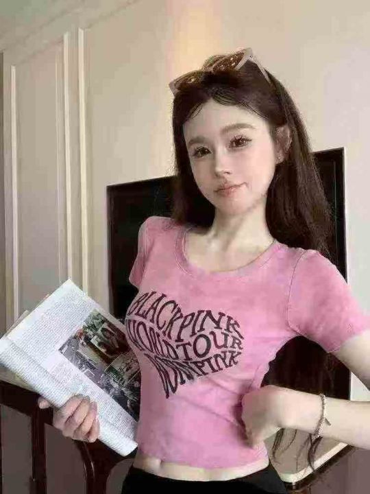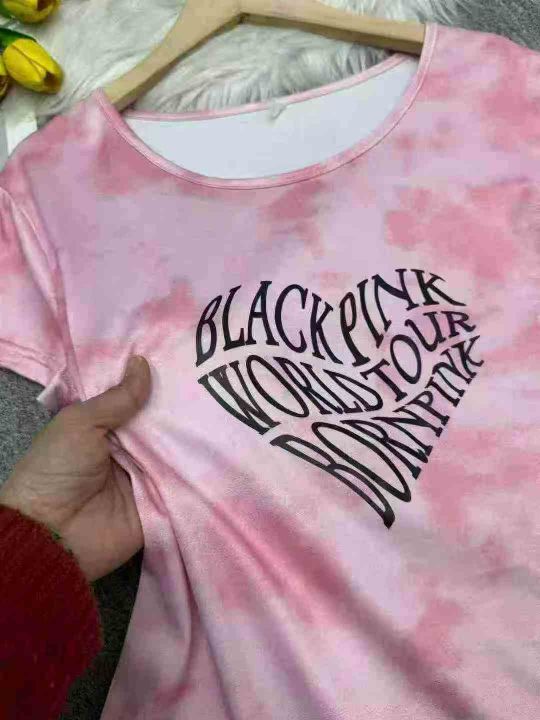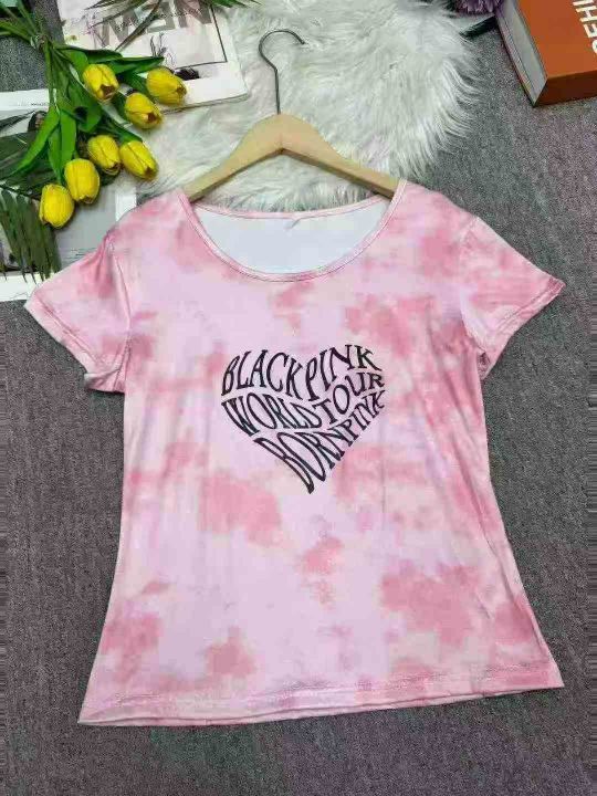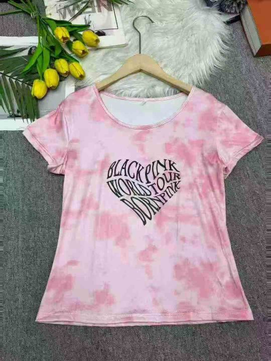 韩版小众扎染爱心字母印花短袖T恤显瘦短款辣妹上衣女,独立包装,1-3码,数量336件,分货加1,货号116#21