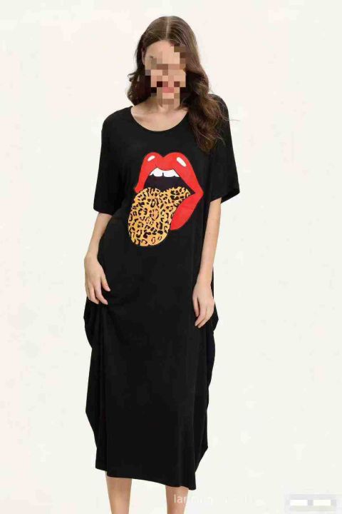 6.8清跨境速卖通爆款印花短袖中长款连衣裙,图片款多...