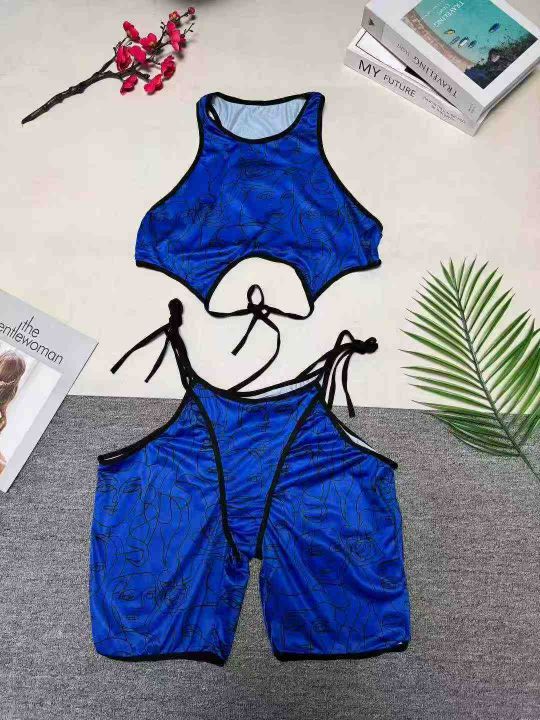 5.8清欧美女印花套装系带短裤套装休闲运动装 ,整款四...