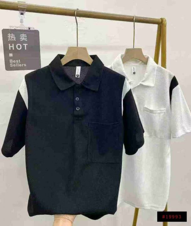 华夫格短袖Polo衫230件8.9,撞色拼接,有口袋,后领包...