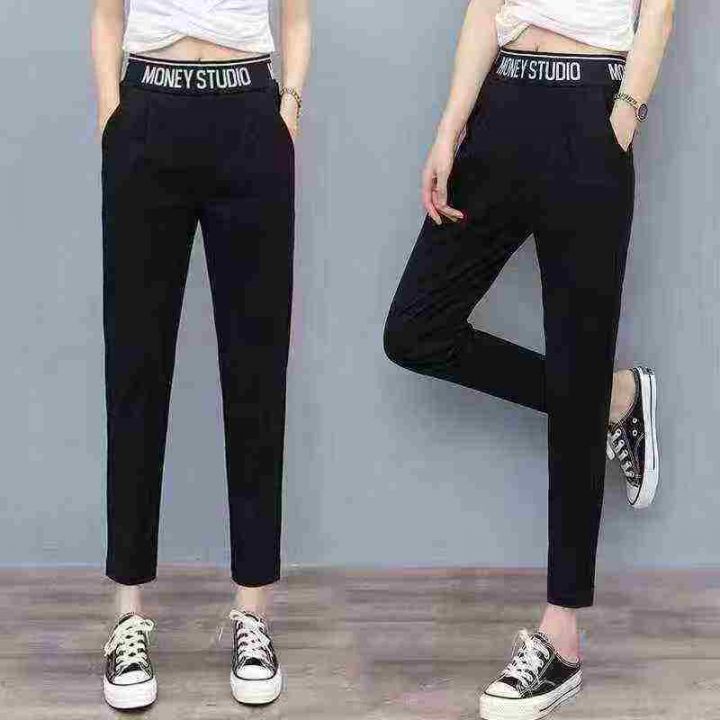韩版松紧腰字母垂感宽松百搭哈伦裤,[爱心]1360件左右,黄字母为主,码数M-4XL,穿80-140斤,(模特图仅供参考),[666]工厂原包装瑕疵,分货结0.5