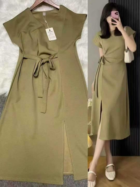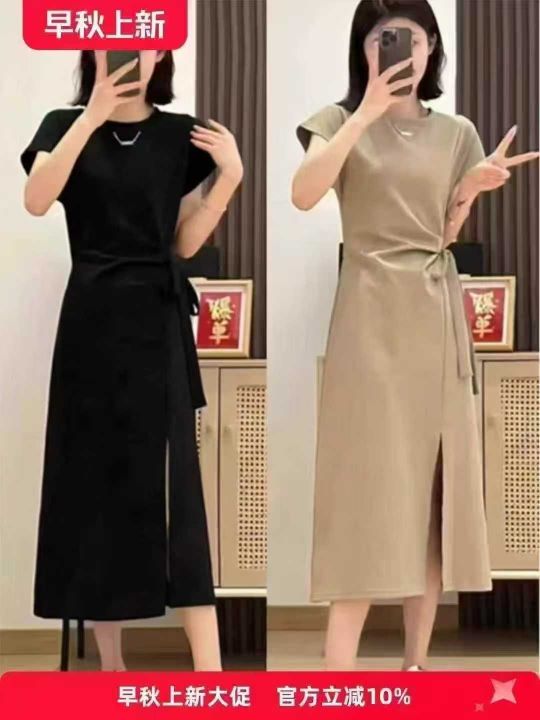大码弹力设计感绑带T恤裙女夏季法式气质通勤显瘦小众收腰开叉连衣裙5000件,独立包装带吊牌,货品干净整洁,工厂订单货,码数齐全,图片款式,尺码M~3XL.全清福利价13.8元,分货➕1