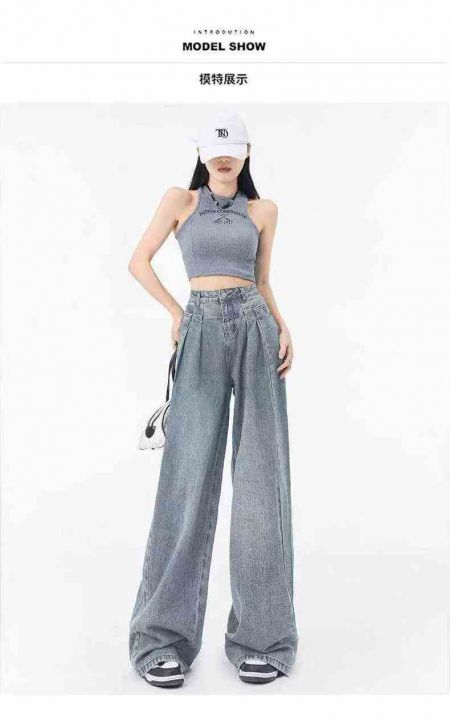 夏季薄款复古高街阔腿牛仔裤女ins垂感高腰,单款单色...