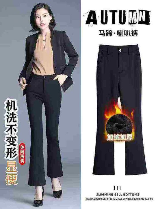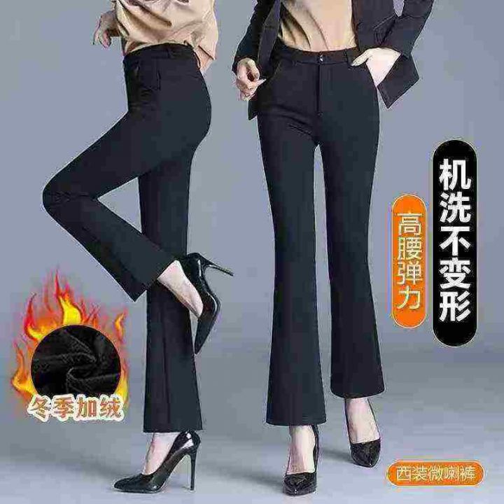 加绒西裤微喇叭裤子女冬高腰大码宽松休闲长裤,独立包...