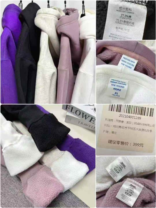 高品质高克重潮牌卫衣系列,男女同款,加绒连帽卫衣圆领卫衣,内里加摇粒绒,保暖性强,小整款,总数量184件左右,码数M-3XL,5件一包。