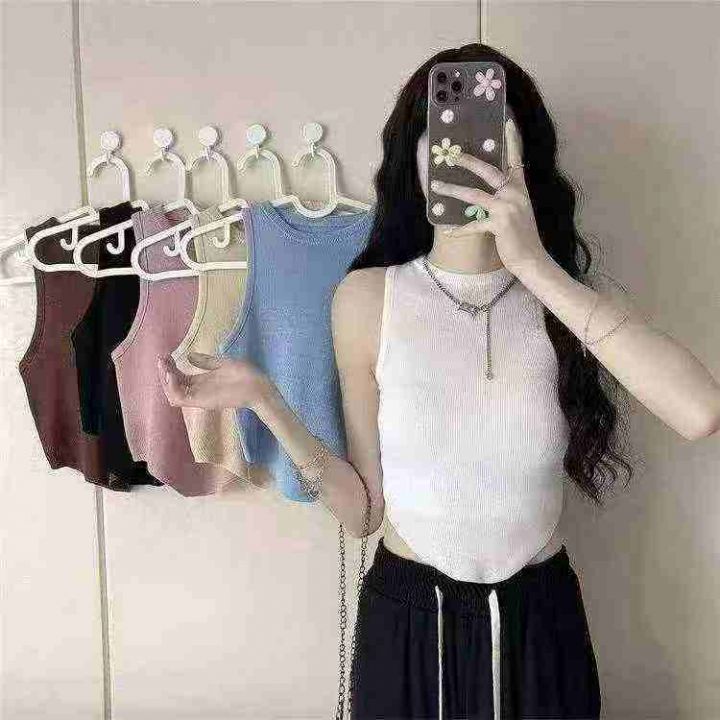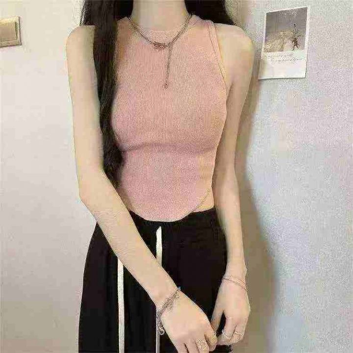 夏季新款不规则圆领弹力修身韩版百搭辣妹针织无袖背心...