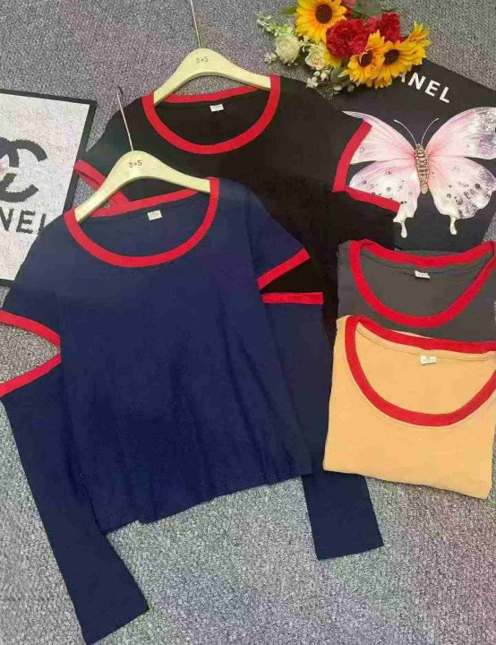 春秋网红新款撞色拼接漏肩韩系长袖T桖,独立包装,码数1-6码(相当于S--3XL码) 700件左右,腾仓库,全清2.99元亏本处理!