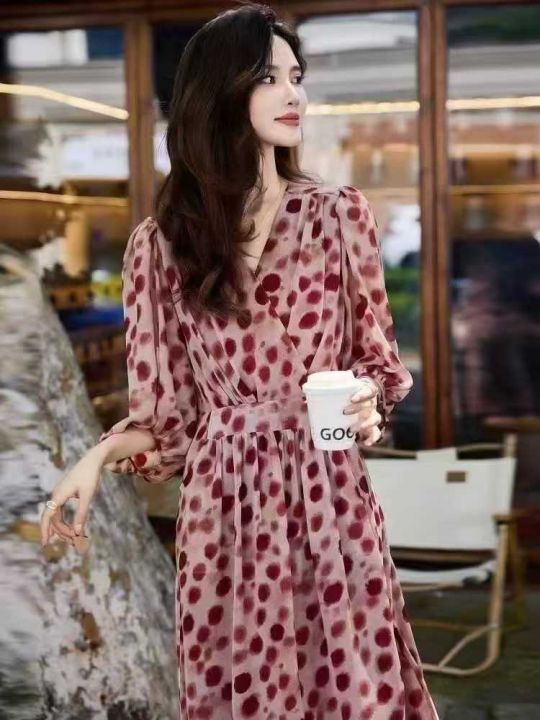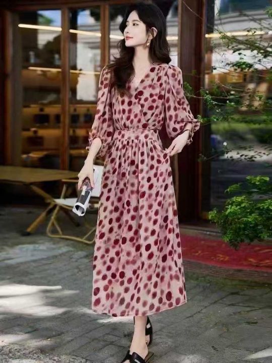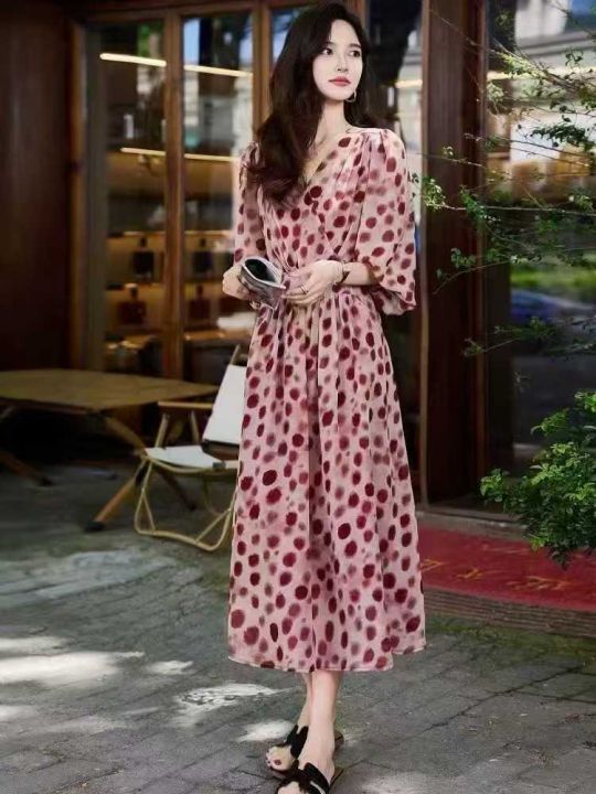 波点碎花连衣裙v领夏季2025新款法式高级感显瘦气质A字...