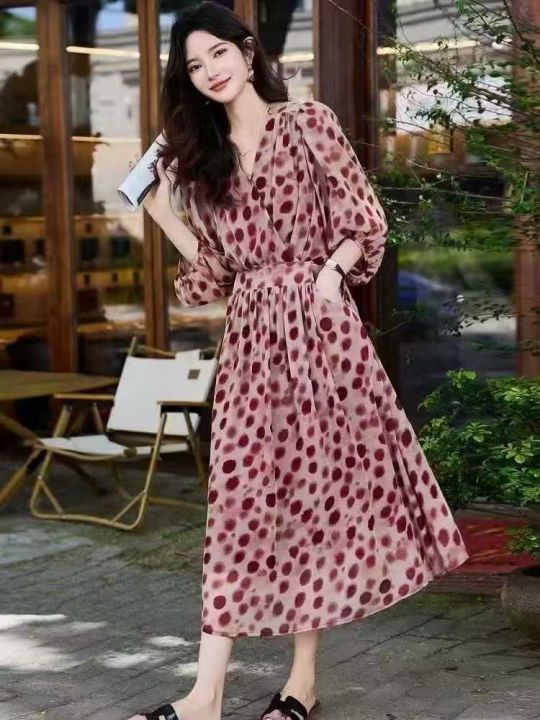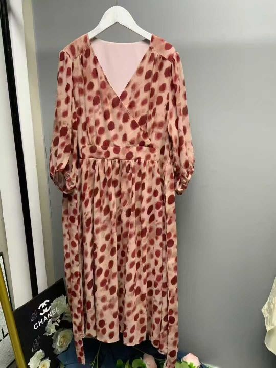 波点碎花连衣裙v领夏季2025新款法式高级感显瘦气质A字长裙150件左右,大码宽松版型,有口袋带内衬,尺码M~3XL独立包装带吊牌,全清福利价12.8元